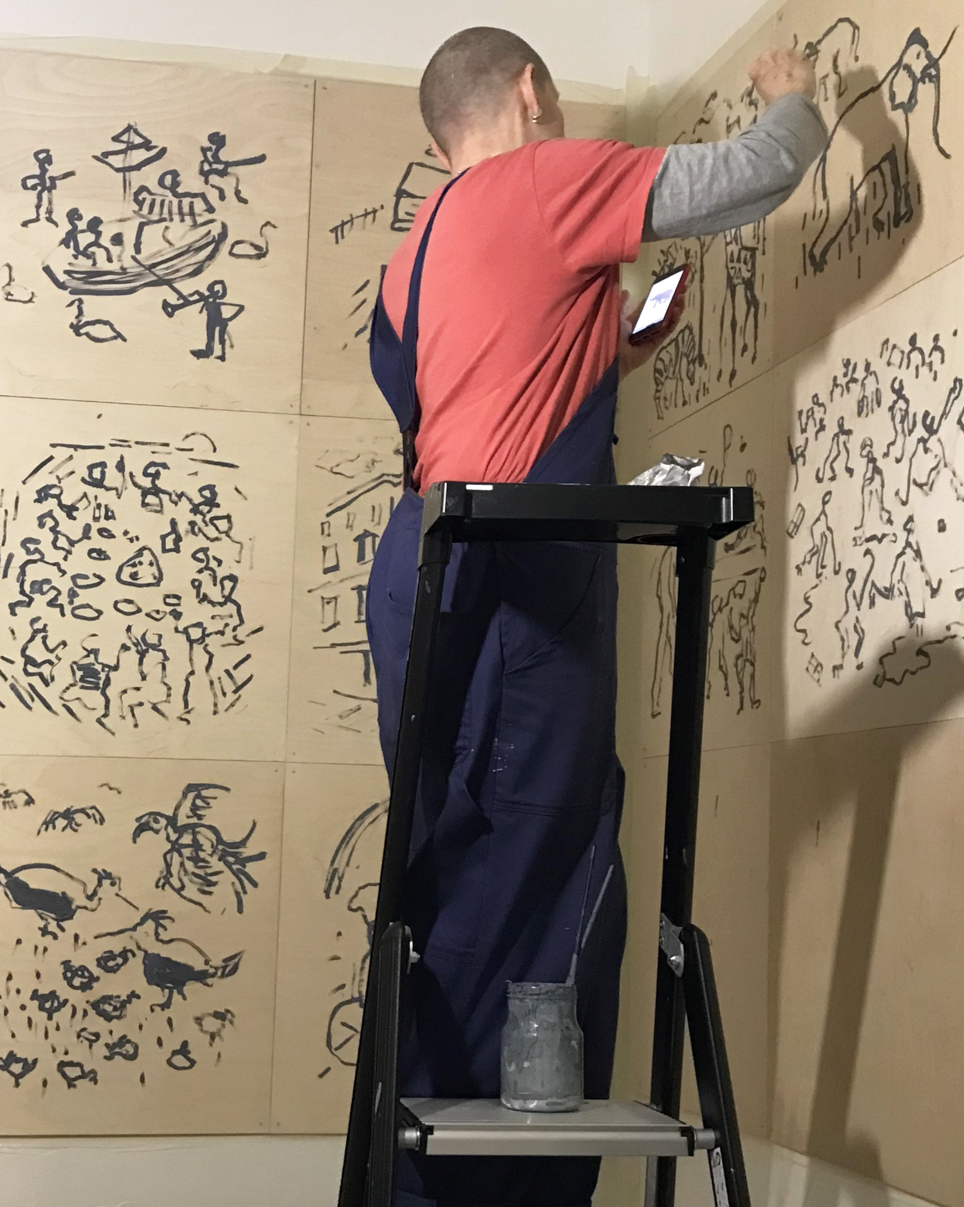 Painted with acrylic color on 23 ply wood panels, a’ 50cm X 60cm.